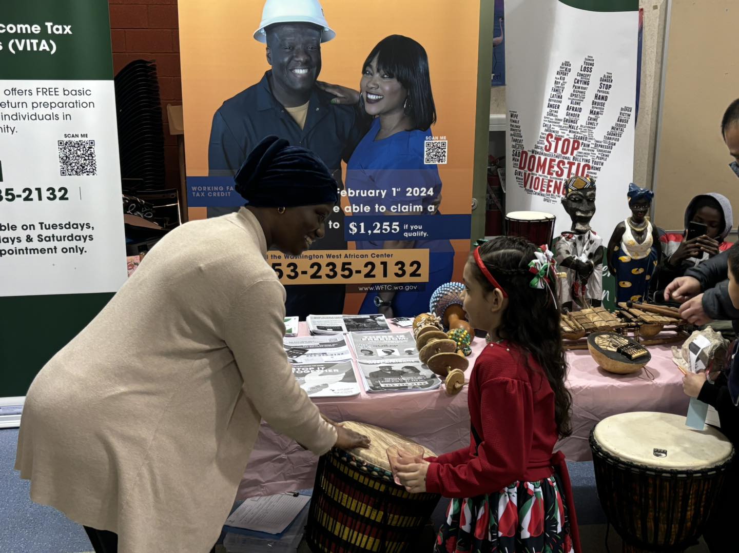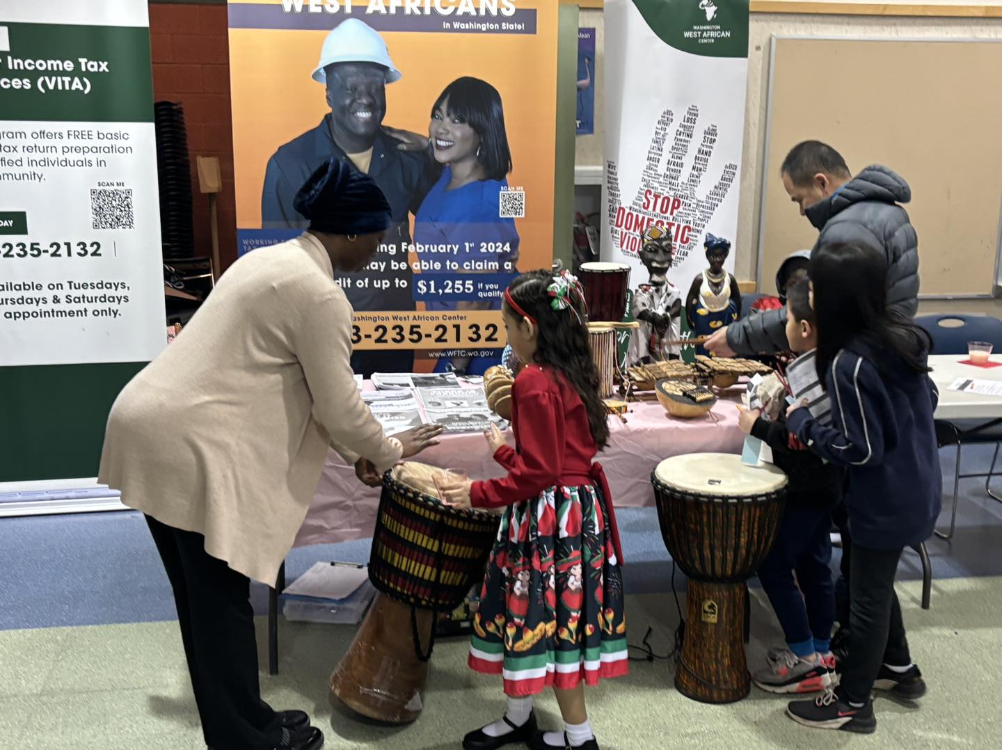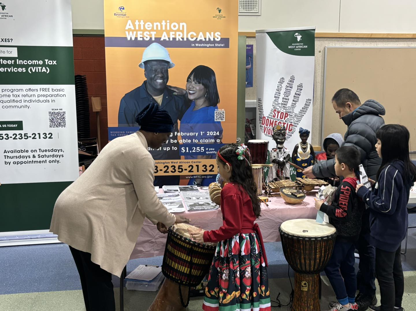 Last Thursday, February 15th, 2024, the Washington West African Center (WAWAC), were invited to participate in the Art and Culture fair organized by Odyssey Elementary School in Everett WA.