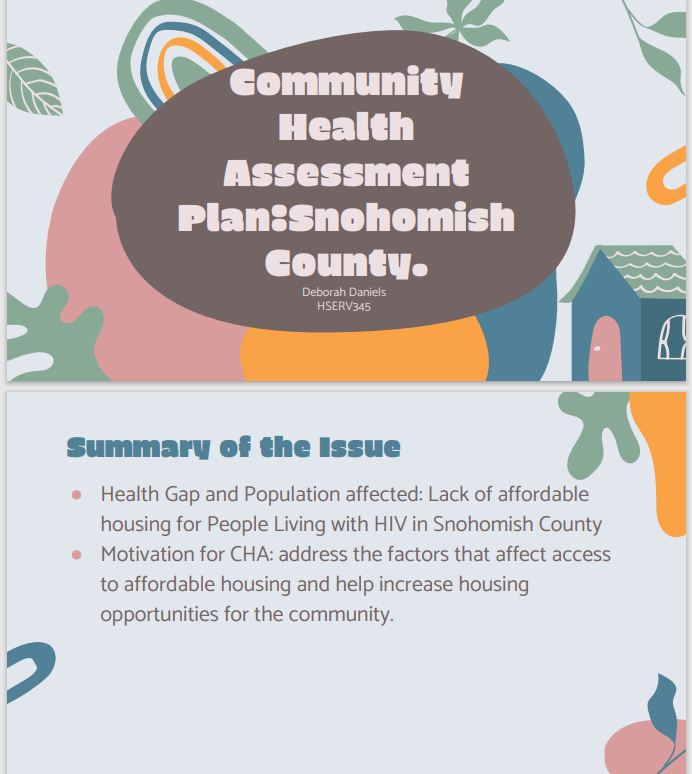 UW Seattle Student Deborah Daniels project on Health Assessment needs interview from Health Systems and Population Health Class (HSERV 345) 2022: