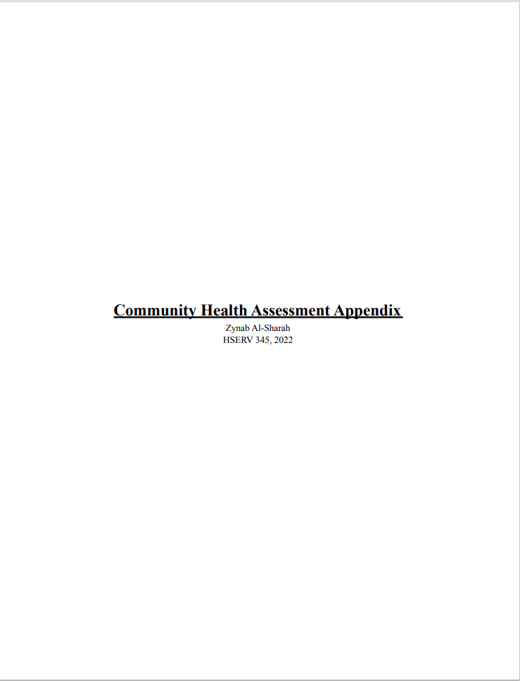 UW Seattle Student Zynab Al-Sharah project on Health Assessment needs interview from Health Systems and Population Health Class (HSERV 345) 2024: