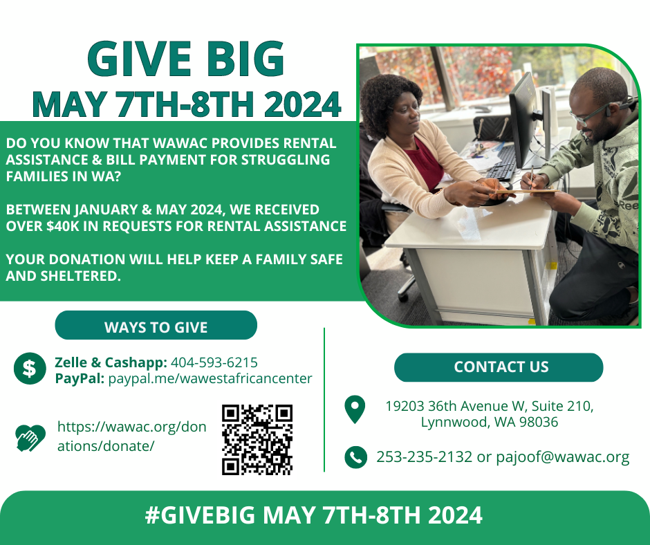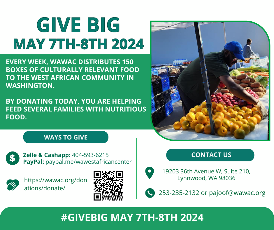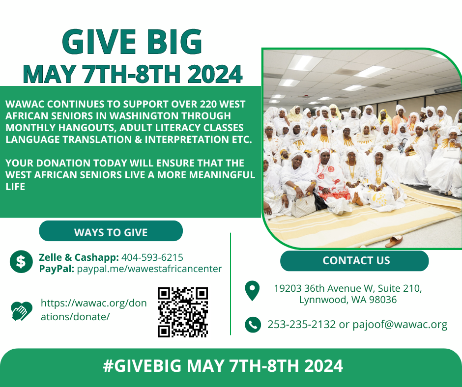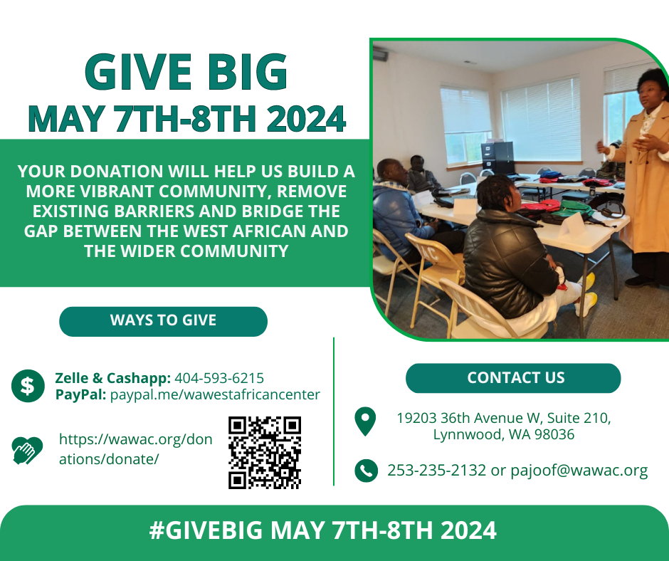 WAWAC’s “Bideew After School Program” offers West African children in Snohomish and King County a free, culturally immersive learning experience twice a week. Providing academic support, social skill development, and collaborative artistic projects, the program has seen significant demand, with 35 children currently on the Snohomish County waiting list alone. Expanding to King County in 2022, WAWAC addresses the need for creative outlets and community engagement among West African youth, fostering inclusivity and preparation for future endeavors.